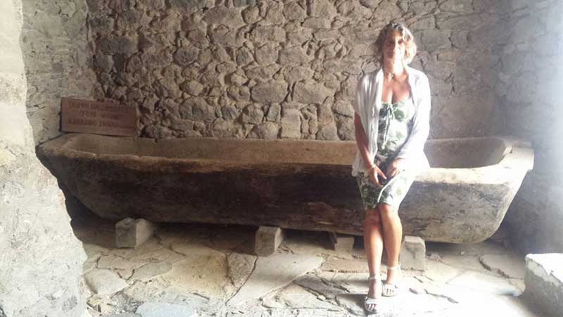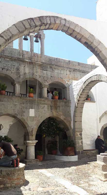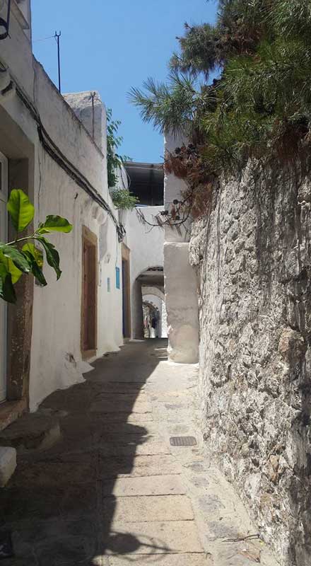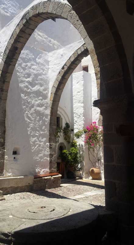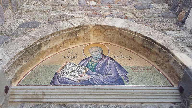 04 Jul Año 2017 - Octavo período de nueve años, El Shipping Hoy - Relatos de Aurora San Juan Evangelista Publicado el 4 julio, 20179 septiembre, 2019 por grapics Frescos bizantinos... Frescos donde cuentan cómo llegó a Patmos Juan el Evangelista.... en una barca... encadenado... junto con su discípulo Prochoro.... quién después escribiera lo que San Juan recibía de Dios... así transcribió El Apocalipsis.... Donde está sentada Vera... es donde se hacían el pan para más de 100 monjes...es un tronco de palma ahuecado... El horno ... El campanario... Llegando... allá Chora y su monasterio... Las celdas de los monjes El punto más alto de Chora.. El patio interno..el centro del monasterio...desde donde se fuè construyendo en forma circular el monasterio... El Águila.. símbolo de San Juan.... El monasterio está lleno de éstas vías de escape... Patios interiores.. El centro del monasterio... Todo construido con restos encontrados de santuarios ..... Las murallas externas que protegían a los pobladores de los piratas invasores.. La ciudad de Chora....construida alrededor del monasterio y sus murallas... Calles estrechas... estratégicas Toda la ciudad està construida como laberinto