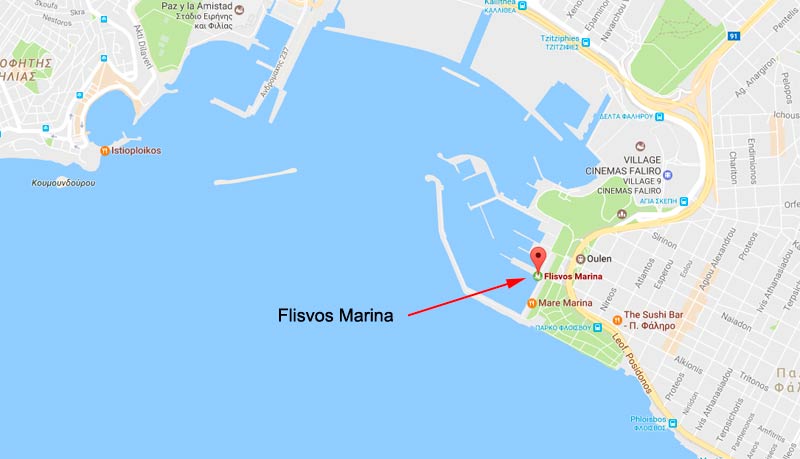 Toda la información que tuve de distintas personas, de todo el mundo, Italia, España, Argentina, etc. todas estaban erradas, sinceramente vine con una idea y esto es totalmente diferente; primero vinimos a la marina Flisvos, la idea mía es quedarme dos meses con la barca acá y después levantarla en algún lado para regresar en agosto a Buenos Aires, imposible, acá en Flisvos no te permiten estar solo unos días, es una marina casi exclusivamente para barcos de charter, hay muchísimos catamaranes. Esta información es para todos aquellos amigos que quieran venir a hacer un paseo por aquí con la nave