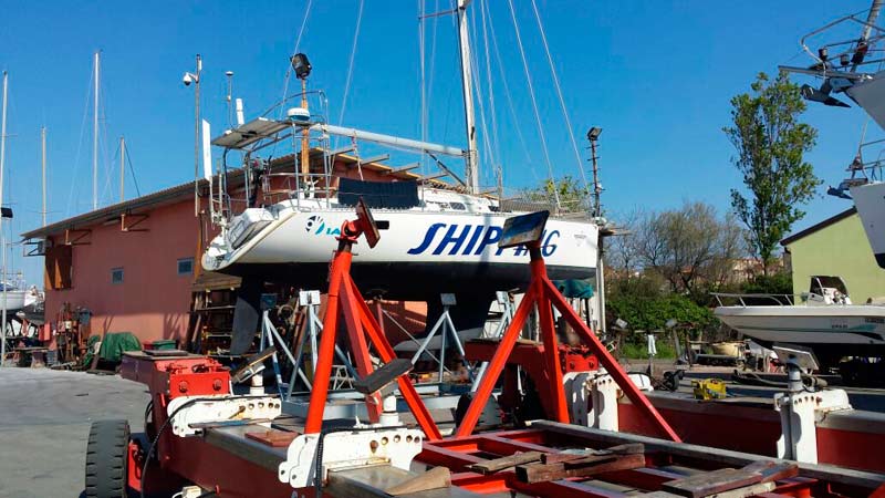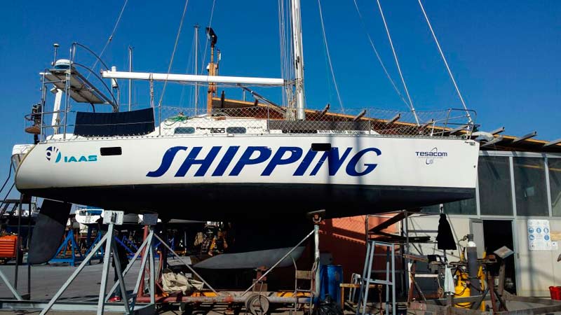 El barco lindo, buenísimo, ya lo están pintando, le están haciendo el fondo, la carena como dicen acá, con bituminoso. Lo tiran al agua el viernes, así que ya va a estar para comenzar los trabajos que son muchos; mientras tanto estoy acá como invitada.
