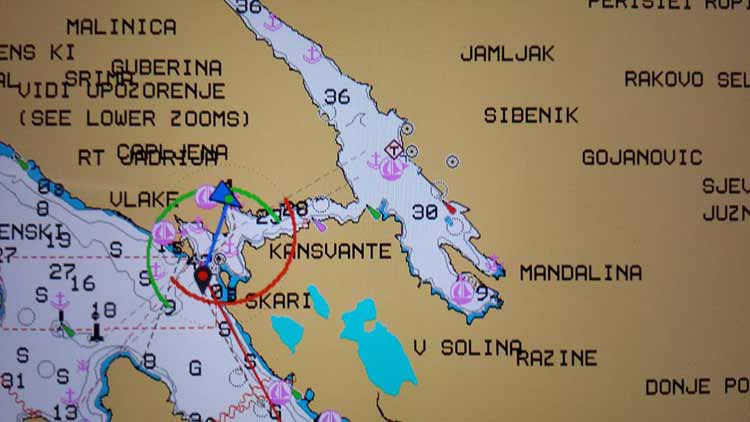 Son las 18,45…estamos cansadas… estuvimos en Primosten… pero eran boyas… no había ninguna libre… y nos dijeron que fondearamos a 300 m de las boyas… siempre me tiro al agua con la luneta para ver si hizo cabeza el ancla… y comprobé que era todo piedra y que nuestra ancla se había metido debajo de una piedra… no me gustó… y puse proa a Sibenik a donde recién arribamos… es otra cosa…es un río de agua salada…. súper protegido…. me voy al agua ….