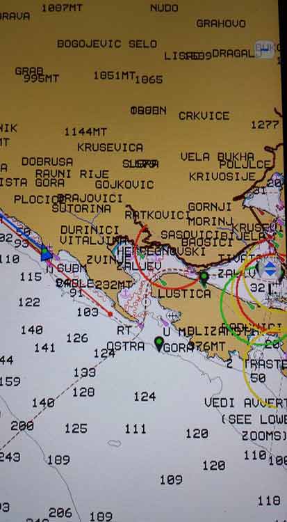 Cuando salimos al mar abierto… el viento soplaba 10/14 nudos exactamente del rumbo adonde vamos…!!! Después de navegar a motor… con olas que nos tiraban para atrás… decidi ampararnos aquí… estamos súper bien y seguras…. este lugar creemos es ya Croacia…. justo en el limite… mañana seguiremos….