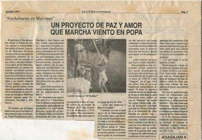 Historia, Malvinas 1992 La Lucila en movimiento Publicado el 25 octubre, 199125 septiembre, 2019 por grapics La Lucila | Recortes de prensa de la travesía del Malabar en 1992