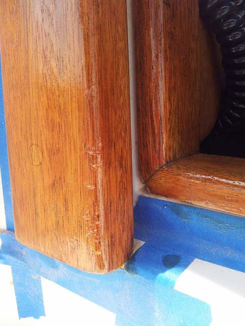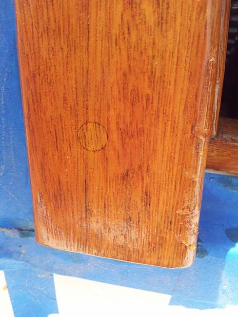 Socorro…!!!! hace cuatro días que estoy con los barnices…!!!! tenia puesto barniz poliuretano bi componente, de astillero… me pasé dos días lijando infructuosamente… hasta que Mario el Tano se apiadó y se trajo todo el equipo con la maquina lijadora etc.. .etc y se pasó toda una mañana puliendo hasta sacar todo el barniz viejo que después de 7/8 años reventó con el sol, y Ernesto se llevó los dos asientos de popa y me los trajo impecables a madera cruda… ahora vino lo mío… pasar lija finita y empezar a darle con barniz International Woodskin a todo…. ya le di tres manos… pero recién miro en algunos lugares y tiene pequeños puntitos que sobresalen….. que pasó..???? por qué…???? y cómo lo resuelvo…??? es quizás el sol…??? van las fotos…..