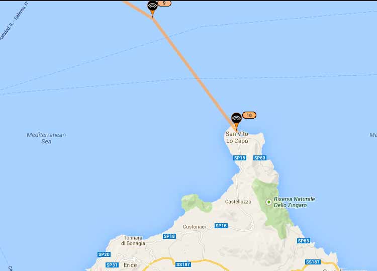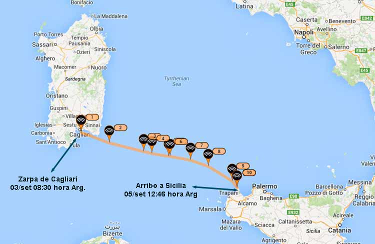 05 Sep El Shipping Hoy - Relatos de Aurora, Junio 2014 - Nueva travesía - Compartir Arribo a Sicilia – San Vito Lo Capo en la provincia de Trapani – Posiciones del Spot Publicado el 5 septiembre, 201425 septiembre, 2019 por grapics El Shipping zarpa de Cagliari el 3 de septiembre 08:38 arriba a Sicilia 5 septiembre 12:46 hora Argentina