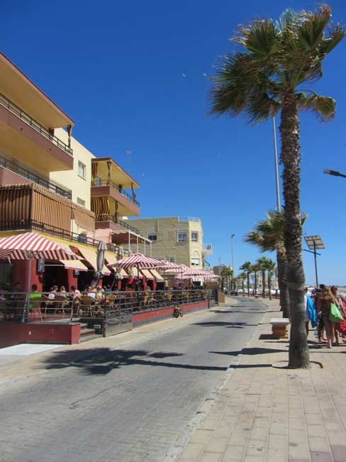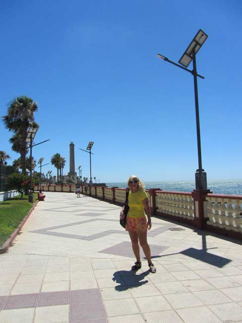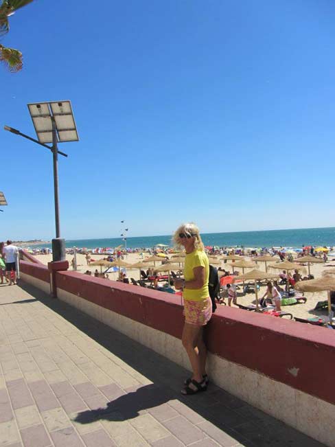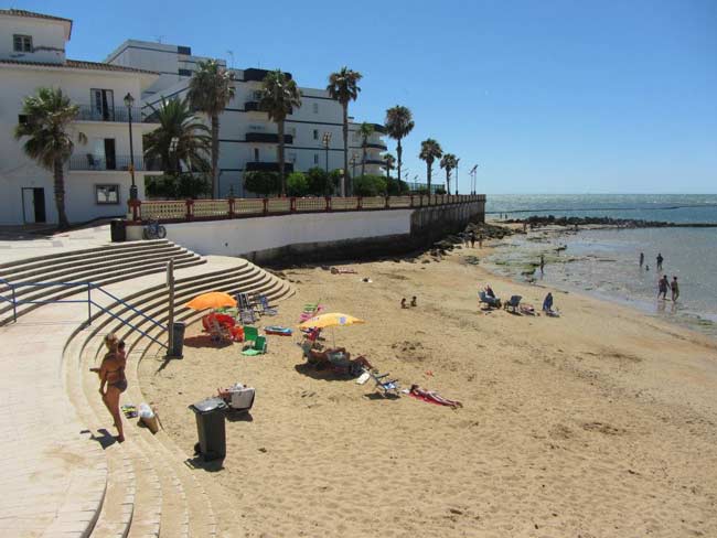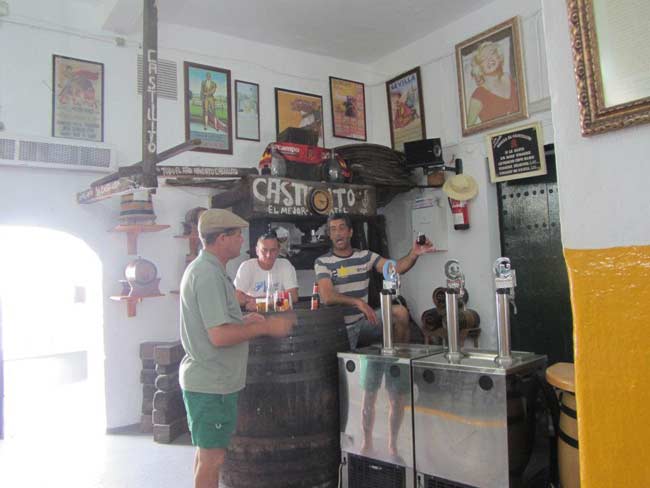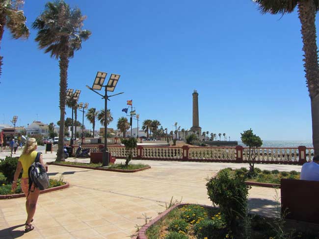 Anoche decidimos ir a comer unos pecesitos que pido disculpas pero se llaman pijotas… y otro que se llama tapaculo o putitas en cueros… alguien que sea de acá… lo va a confirmar… dudé en escribir esto pero Marisa me dijo… esos son los nombres… así que partimos al paseo marítimo… y en los chiringuitos había tanta gente… !!! Y tanto barullo… !! Porque aquí la gente es muy apasionada y hablan muy fuerte, casi gritando… así que decidimos ir a otro lugar que vimos en la costa…. muy lindo.. al lado del faro… se llama los corrales… donde nos rompieron el bolsillo…!!! Comimos huevas de calamar y camarones buenísimos… !!! Resulta que esta zona es la de los Corrales de Pesca de Chipiona… entre el faro y el río Guadalquivir …son cerramientos artificiales de piedras porosas … son trampas que funcionan con las mareas …. estas artes de pesca se remontan a civilizaciones anteriores a los romanos …. los peces entran con la marea alta y cuando se vacían quedan en los piletones infinidad de peces y sobre todo de mariscos …. chocos, ostiones, pulpos, róbalo. boquerón, sardina, sargo, pejerrey… etc… etc… haciendo un paraíso para la gente que gusta de estos manjares…. aquí le llaman pescado vivo de tan fresco… bueno además en nuestro paseo diurno, caímos en una bodega de vinos caseros de la zona, clarete y el famoso moscatel…. por supuesto inmediatamente nos preguntaron si éramos argentinas y al grito de …. Messi.. !!!! nos dieron a probar los distintos productos, los que degustamos con placer…. y al rato nos dimos cuenta que el moscatel sube….. así que nos fuimos caminando despacito y cantando bajito…. a hacer la siestita….. luego nos toca preparar el barco para partir mañana a Cádiz…..