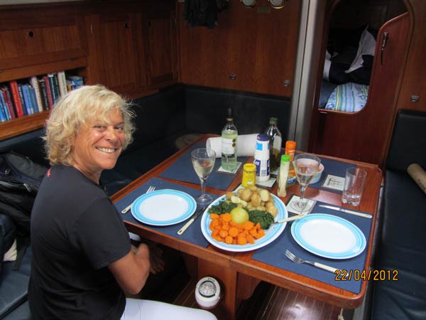 Volvimos inmediatamente a Opua yo por supuesto rezando para que no se nos caiga el palo… y que nos deje llegar sanos y salvos …. el regreso fue en silencio…. supongo cada uno meditando lo sucedido….. yo cada vez más me asombro todo lo que me enseña navegar… para la vida….. llegamos a las 4 de la madrugada a la seguridad de la marina de Opua…. y me puse a cocinar una rica comida con vinito blanco bien frío…. y después de asegurarnos que el barco estaba seguro…. yo por lo menos me desmayé de sueño y de stress. Hoy martes, recién terminamos de cambiar todas las piezas nuevas.