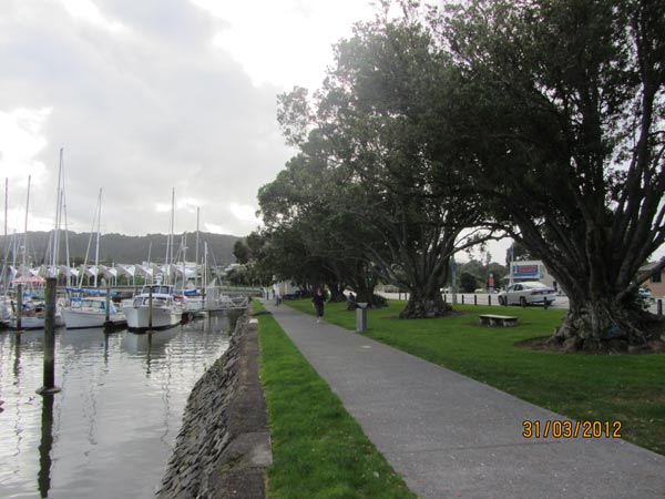 Auckland es buenísimo… lleno de grandes barcos y muy limpio y prolijo…. pero muy caro… hoy llegamos a Whangarei donde está el barco… el camino es precioso con muchas montañas pequeñas lleno de árboles como en nuestro sur y muchísimas granjas liadísimas, la marina en Whangarei, está sobre un río que desemboca en el mar. Lamentablemente el wifi no llega al barco…así que tengo que caminar bastante para venir a este lugar de internet, vendré una vez al día, estoy feliz, Stuart preparo el barco para mi, tengo un camarote entero para guardar mis cosas y lugares en todo el barco para mi especialmente, es un caballero, descansaremos hasta que vengan sus amigos y partiremos a las islas, compré un equipo de pesca completo y para bucear también…. es muy hermoso todo.. mañana mando las fotos…. ahora son las 17 hs. hora de drink…. happy hours… besos
