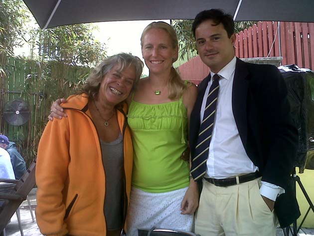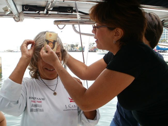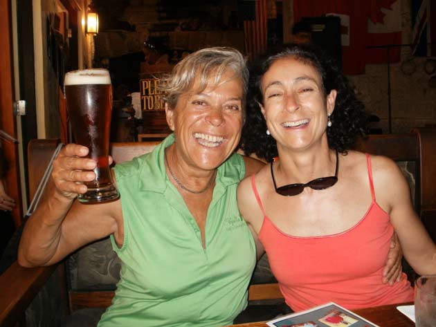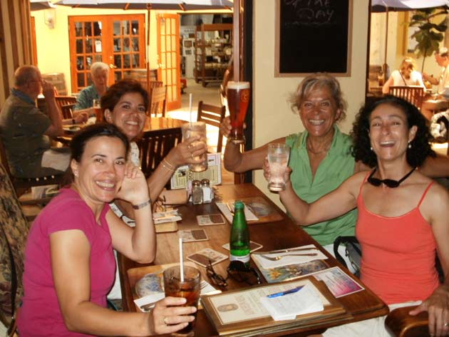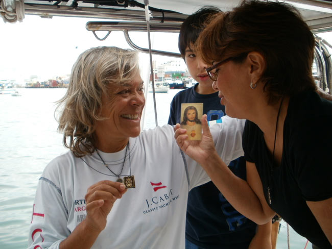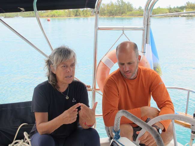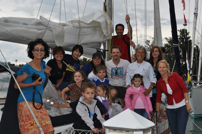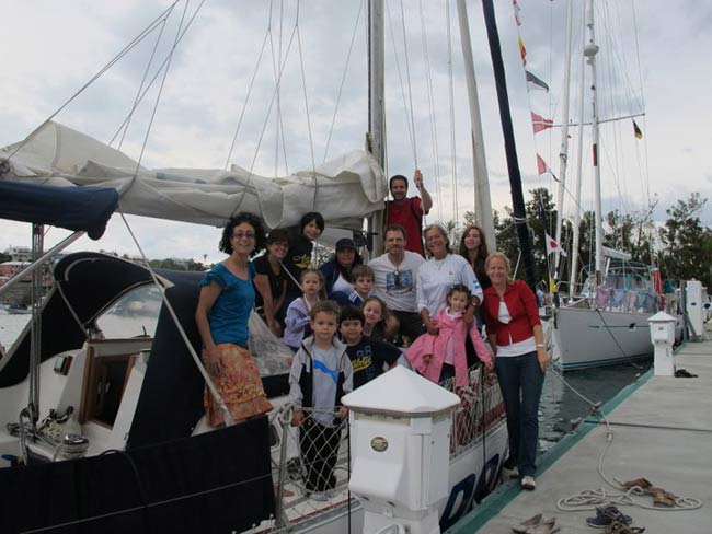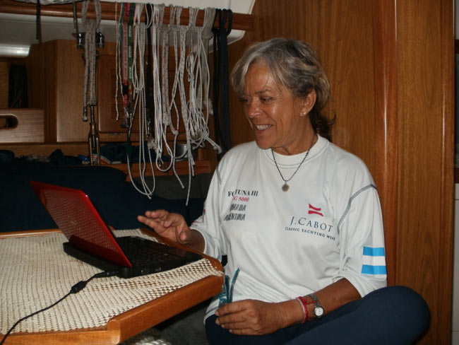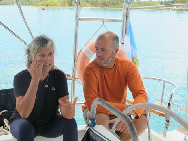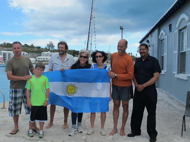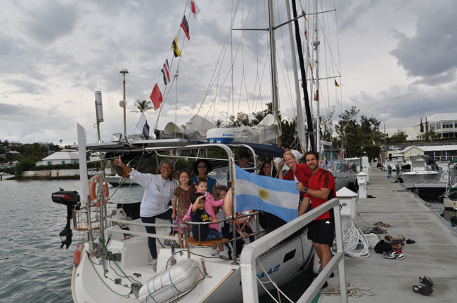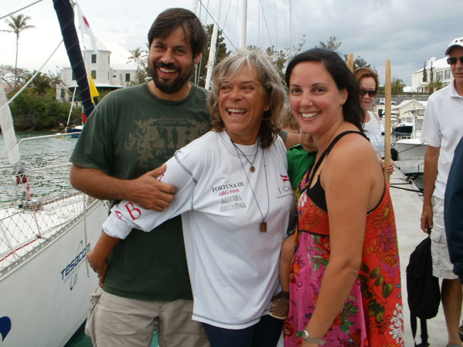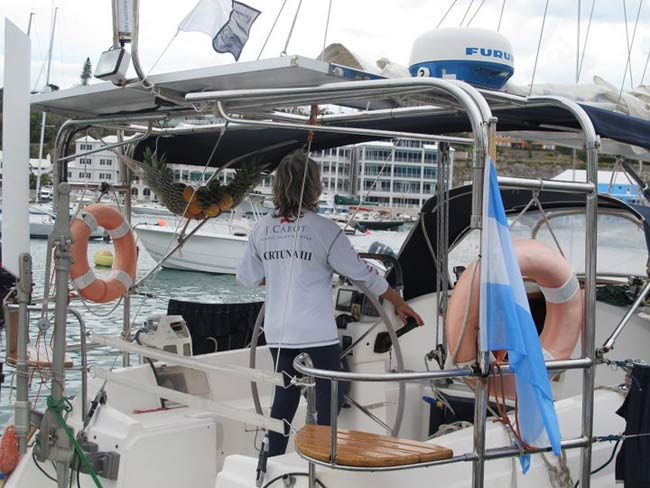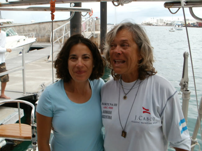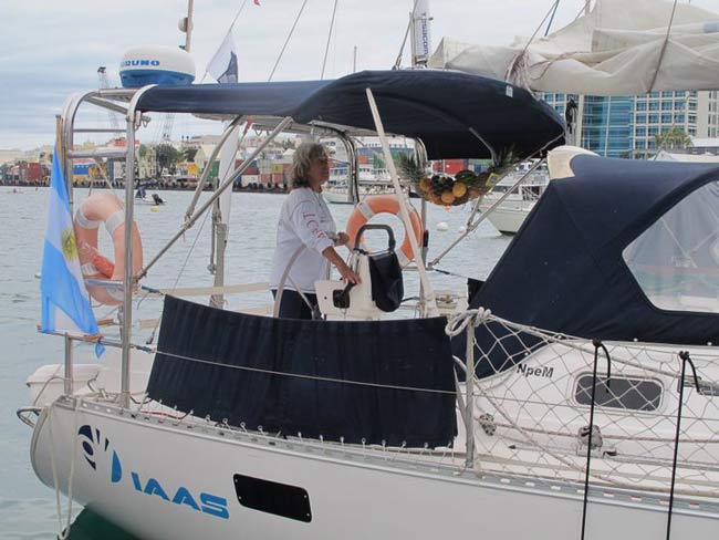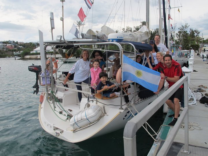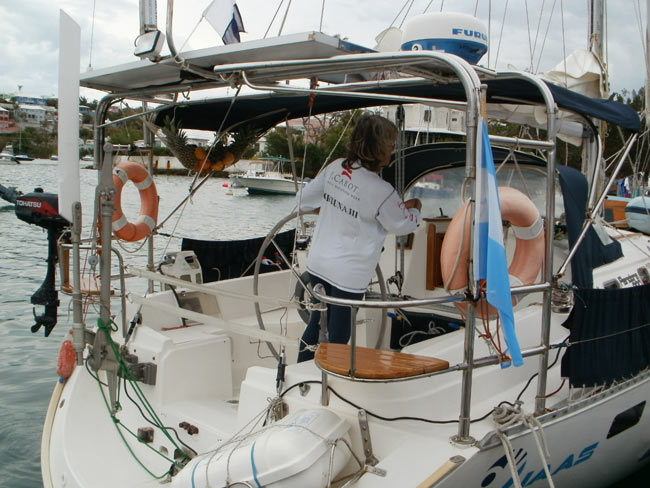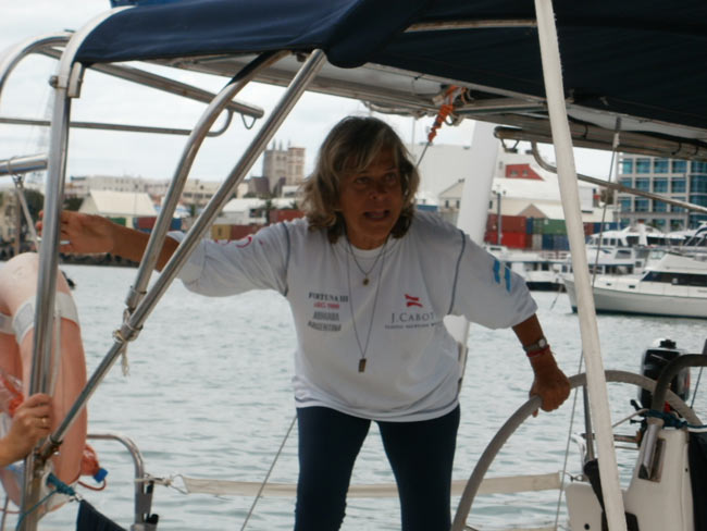Estoy en el bar del Club.. porque no tengo internet en el barco, pido disculpas por no haber escrito antes …. pero Roberta y todo el grupo de Argentinos y Uruguayos que hay en la isla.. me raptaron …. felizmente .. porque encontré un grupo humano increíblemente solidario y cariñoso conmigo…. creo que les conté que la primera noche la pase acoderada al Begonia un catamarán de Un argentino que vive en Chicago… Sebastián …. que cuando estaba entrando en St. Jorge …. sin saber donde era la aduana ….. escucho un grito fuertisimo ….. AURORAAAAAAA …!!!!!! inmediatamente me dirijo hacia el cata y se suben a bordo Sebastián y una de sus tripulantes ….. me ayudaron a tomar amarras en el muelle de la aduana, donde me estaban esperando Roberta con su familia y otros argentinos con una bandera enorme, me ayudaron con los papeles y volvimos a acoderarnos, a bordo uno de los muchachos del cata .. cocinó dos tortillas de papas, riquísimas …. con vino y caipirinha …. a las 6 hs nos paso a buscar el otro Sebastián, el argentino que vive aquí, y que es mecánico… instalaba los motores de Jorge Regnicoli en Bs As ….. y nos llevó a comer un asado fabuloso con vino tinto de Mendoza…. un verdadero festín …. lo pasamos lindísimo ….. esa noche me desmayé …… al otro día no podía despegar los ojos ….. desayuné y partimos con la tripulación masculina del Begonia hacia Hamilton …. donde nos esperaba Jorge el Uruguayo, profesor de vela del Royal Hamilton Dinghy Club … suena no..? el viaje a motor duro 2 horas y hay que tener mucho cuidado porque si bien está señalizado hay muchos arrecifes en el camino y hay que virar un montón de veces para no pegarte con ellos …. llegamos y me ubicaron en un lugar muy cómodo, donde tengo luz y agua y creía internet pero no …. no llega …. enseguida vino Jorge a charlar y se ocupó de que me hagan un buen descuento.. cobran 3,50 usd.. por pie…. casi me desmayo… pero me cobraron mucho menos…. además me consiguió la gente para que chequ ee toda la jarcia…. y regulen el piloto ByG que había quedado mal en Martinica …. Roberta tenía preparada su casa para recibirme… una inmensa y mullida cama donde dormí como en el cielo …. y Peter había preparado pollo, carne y una rica ensalada. … por supuesto con vino tinto buenísimo ….. demás esta decir que se movía absolutamente todo…. el baño…. el techo del dormitorio … todo…. a la mañana siguiente me dolía todo…. hasta las uñas …… empecé a ver los 680 mails. …y a contestar … además de chequear el facebook que es una ardua tarea… me llevo hasta el mediodía …. a partir de ese momento Roberta se transformó en mi ángel guardián, llevándome a todos lados, hablando y organizando reuniones, almuerzos y cenas con todos los amigos que querían reunirse conmigo y que les cuente en persona toda la historia….. a la tarde vino Sebastián para empezar con el motor ….. se acuerdan que perdí todo el fondeo..? 30 metros de cadena de 8 milímetros calibrada …. más 30 metros de cabo … más la Delta …. solo la cadena me costaba 600usd. … y vengo volando bajito con las reservas … .no puedo tirar manteca al techo …… en eso viene Jorge, el uruguayo y nos dice …. Aurorita …. recién un socio trajo como donación una cadena …. porque no vas a mirar…? por ahí te sirve ….. salimos con Roberta corriendo, y vimos un montón de cadena usada pero buena en una carretilla.. me parecía parecida a la mía ……. la llevamos al lado del Shipping ….. y Sebastián la midió ….. esta puesta en el malacate del Shipping… 70 metros de hermosa cadena … usada … donada ….. coincidencia … ? o las energías se ordenan para que pueda seguir…… ?