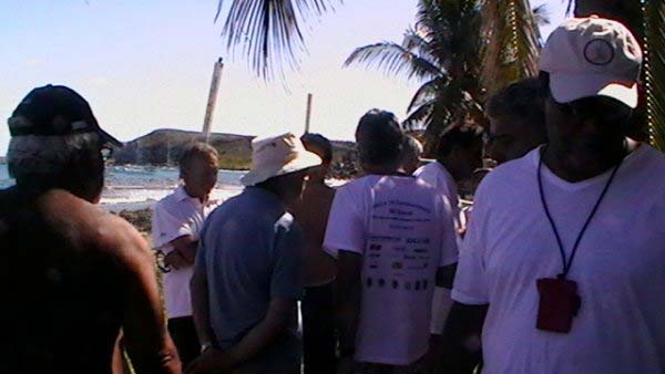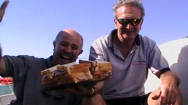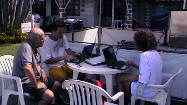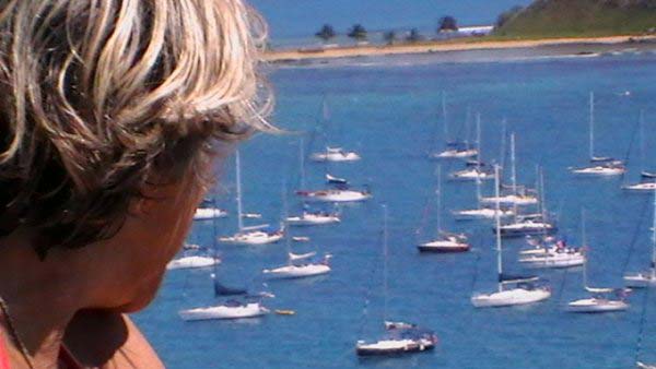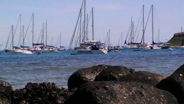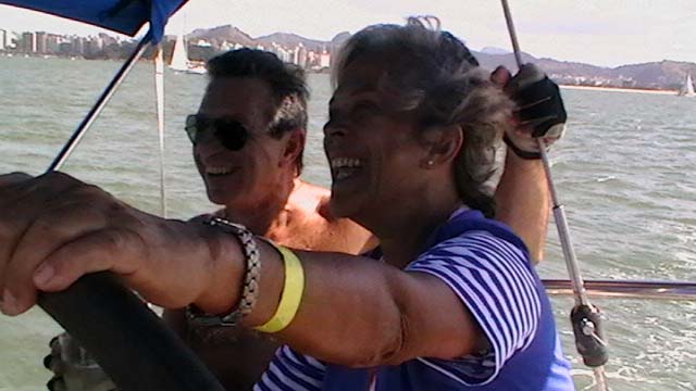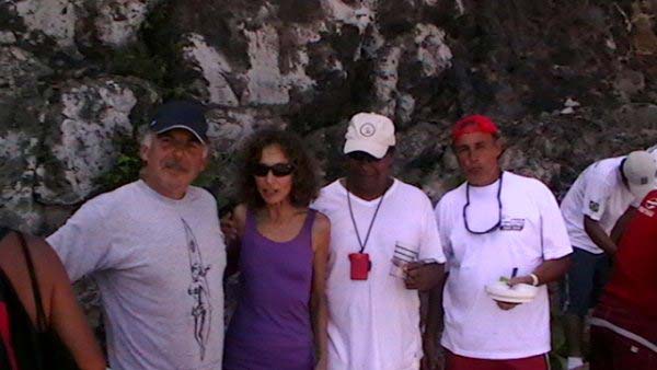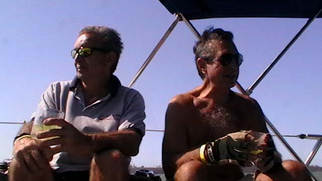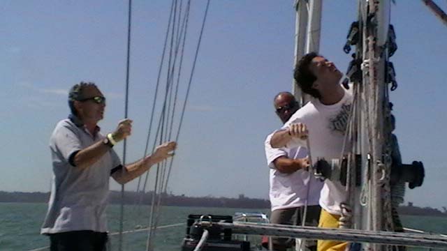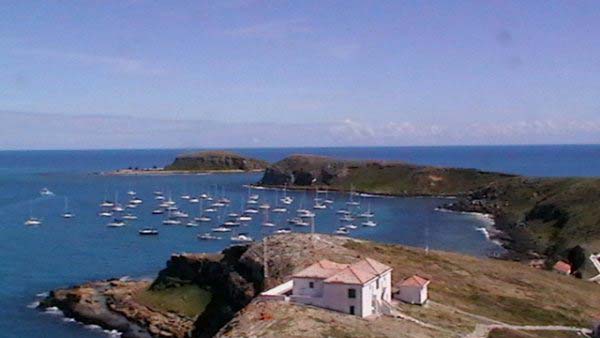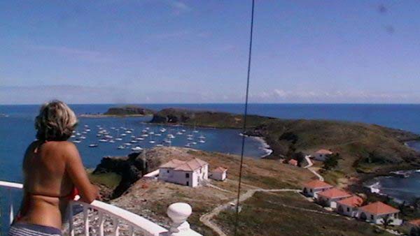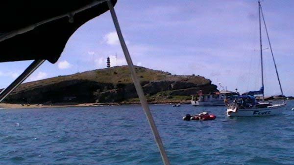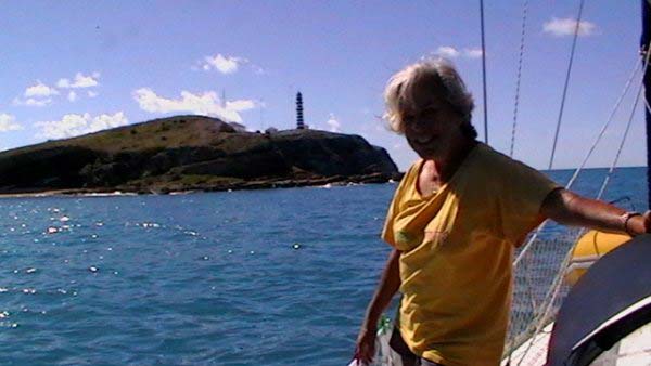 Mientras Ximena cocina un guisito de lentejas con panceta ,empiezo la nota del viaje de Vitoria a Abrolhos, son las 19,30 hs del domingo 1° de agosto, y zarpamos mañana para Abrolhos, a las 5 de la mañana para llegar el martes a la tarde, después de navegar dos días y una noche llegamos al atardecer con los últimos rayos del sol, ya estaba la mayoría de la flota fondeados en la bahía sur de la isla De Abrolhos, llegamos súper cansadas, comimos y a la cucha…..nos desmayamos…..empezamos a ver ballenas….a mitad de camino, pero no tan cerca como las vimos después, la isla es una maravilla en medio del océano donde viven estables unas pocas personas entre ellas Berna que hace 21 años que vive ahí y es la primera mujer guarda fauna, que existe en ése paradisíaco lugar visitamos toda la isla, el faro…donde verán las fotos que mandé….pero lo más increíble es la paz que se respira en ese lugar tan distante de todo……estuvimos 1 día y 1 noche, mergulhé cerca del faro, donde ví cantidad de peces rallados azules y amarillos llamados taxi, y los famosos corales cerebros, en cada una de las distintas islas viven diferentes tipos de pájaros en la isla Siriba viven y se reproducen los Atobás…..que después migran a las islas Canarias….zarpamos después de comer un rico churrasco y dormir para salir al día siguiente hacia Santo André…..al día siguiente salimos a mediodía, y ahí fue donde ocurrieron las historias de las ballenas con varios barcos, El Aventurero que me cuenta que estaba Miriam de guardia a la noche y se asustó por el fuerte ruido del chorro de la ballena que lomeó tan cerca que sintió un fuerte olor a pescado, el Gipsy Wind, cuenta que tuvieron un topetazo con dos ballenas una nadaba a la par y de repente apareció otra que se le cruzó por la proa, levantando el barco al meterse debajo del quillote, otra historia es la del barco Firulete el que me debe la historia y las fotos, porque uno de los tripulantes a pesar del susto se dedicó a sacar fotos de las ballenas, lo que no pudimos hacer nosotras porque era tanta la cantidad que nos rodeaba, que no nos daba tiempo, hasta que venía timoneando yo con el motor encendido igual para que el ruido alejara a los bichos pero me parece que eso es cuento, porque de repente aparecen al lado del Shipping dos inmensos lomos que navegaban al lado nuestro lomeando y tirando chorros de agua, tan cerca que la llamé a Xime que dormía, para que las vea, y yo me puse a rezar un mantra que siempre digo en momentos de peligro…..además del Padre Nuestro y de pedir a todos los Arcángeles y Seres Queridos que nos protejan, porque era muy impresionante y daba miedo verlas tan cerca y no saber si se meterían debajo del barco, o pegar un coletazo, con lo que nos veríamos en serios problemas…..no pasó nada, estuvieron acompañándonos un trecho largo y después se fueron resoplando en nuestra proa….