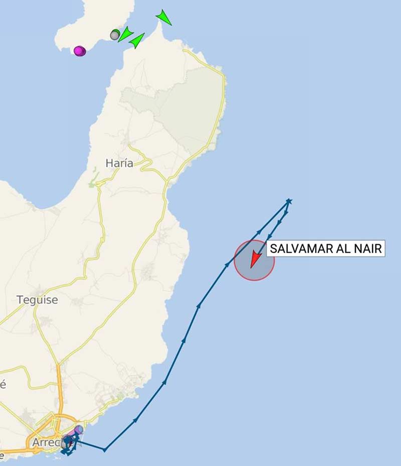 Aurora ya está bajo remolque de salvamento marítimo rumbo a la marina Lanzarote.