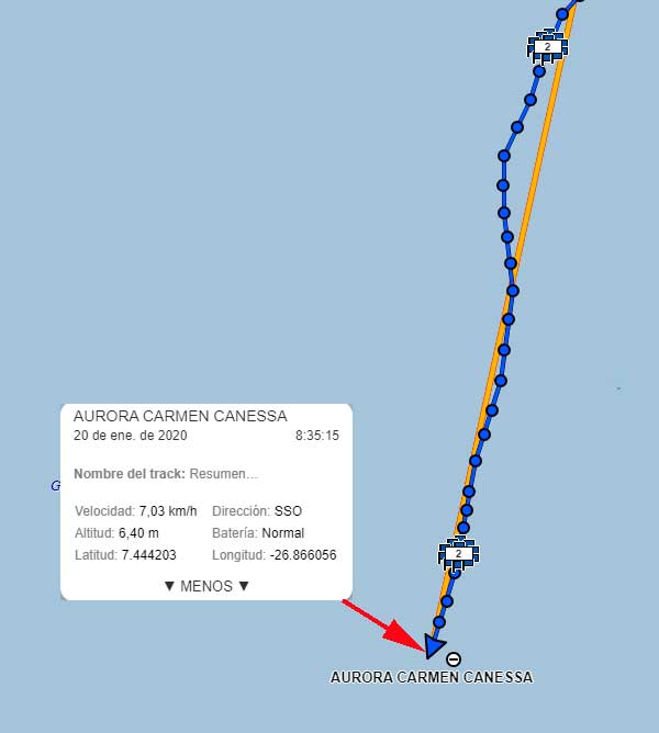 20 Ene Año 2019 - Retornando a casa, El Shipping Hoy - Relatos de Aurora Posición del Shipping para el 20 de enero a las 08:35 Publicado el 20 enero, 202020 enero, 2020 por Roberto Garro Track y posición del Shipping, Aurora Canessa y tripulación para el 20 de enero a las 08:35 hora de argentina