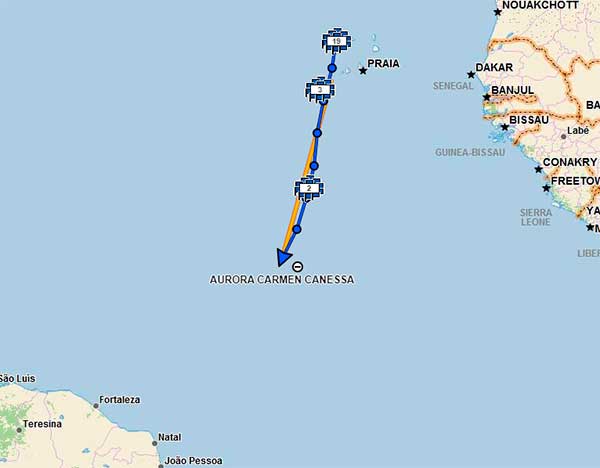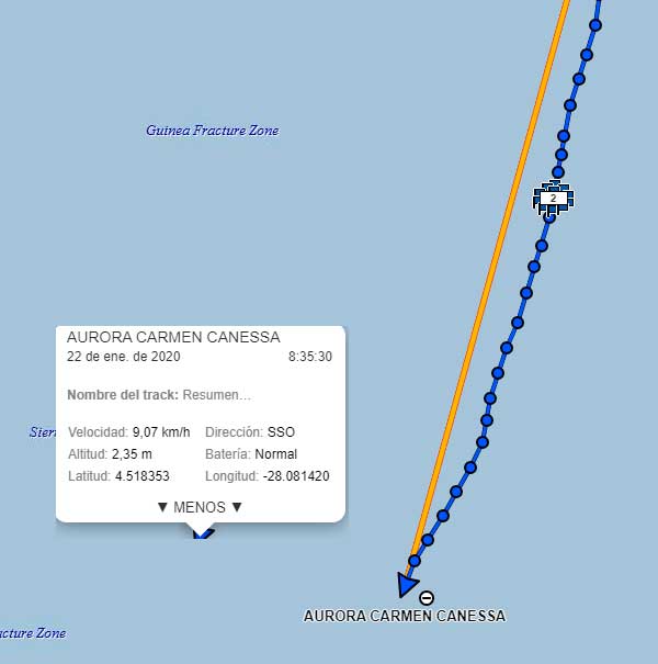22 Ene Año 2019 - Retornando a casa, El Shipping Hoy - Relatos de Aurora Posición del Shipping el 22 de enero a las 08:35 Publicado el 22 enero, 202022 enero, 2020 por Roberto Garro Track y posición del Shipping, Aurora Canessa y tripulación para el 22 de enero a las 08:35 hora argentina