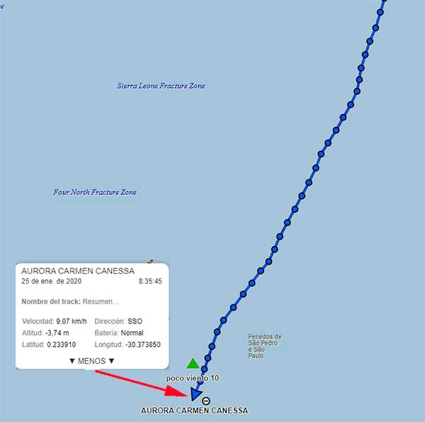 25 Ene Año 2019 - Retornando a casa, El Shipping Hoy - Relatos de Aurora Posición del Shipping el 25 de enero a las 08:35 – A punto de cruzar el Ecuador Publicado el 25 enero, 202025 enero, 2020 por Roberto Garro Track y posición del Shipping, Aurora Canessa y tripulación el 25 de enero a las 08:35 hora de argentina. Entre 3 ó 4 horas cruzarán el Ecuador