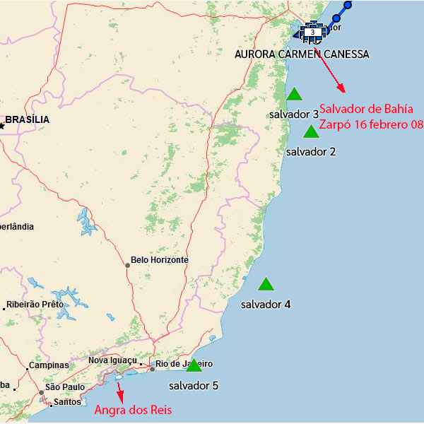16 Feb Año 2019 - Retornando a casa, El Shipping Hoy - Relatos de Aurora Zarpamos – Rumbo Angra – 800 millas Publicado el 16 febrero, 202016 febrero, 2020 por Roberto Garro El Shipping, Aurora Canessa y tripulación zarparon hoy a las 08:00 De Salvador de Bahía rumbo a Angra dos Reis – Distancia 800 millas