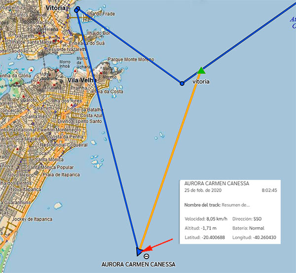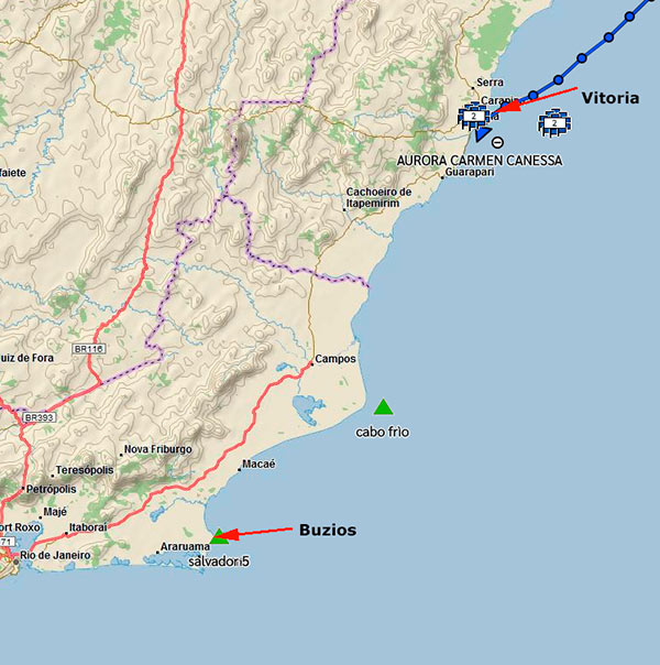 25 Feb Año 2019 - Retornando a casa, El Shipping Hoy - Relatos de Aurora El Shipping rumbo a Buzios Publicado el 25 febrero, 202025 febrero, 2020 por Roberto Garro Aurora Canessa, su tripulación y el Shipping zarparon hoy a las 6 de la mañana desde Vitoria rumbo a Buzios. Posición para hoy martes 25 de febrero a las 08:02 hora rgentina. El viernes pasa otro frente del sur.