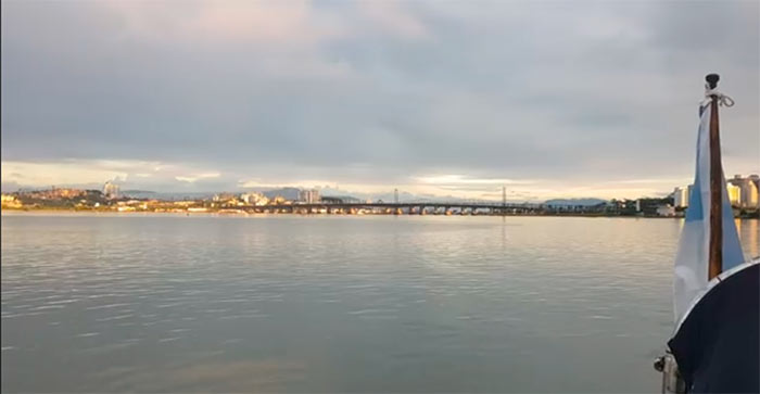 Aurora Canessa, Omar Sanchez y el Shiping zarparon hoy a la madrugada de Florianópolis a Río Grande.